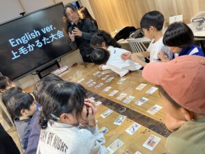 今回は英語版ということで、子どもたちは最初こそ少し戸惑いながら札を手に取っていました。
